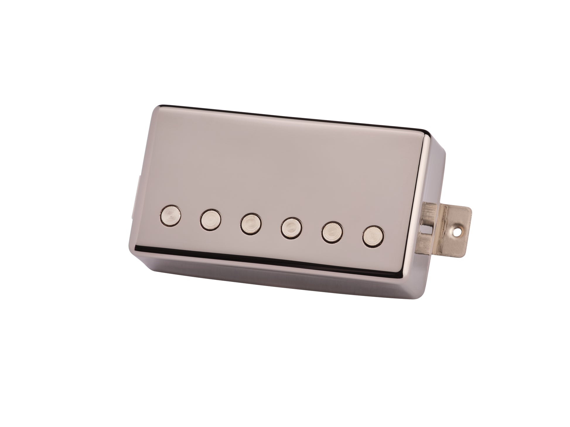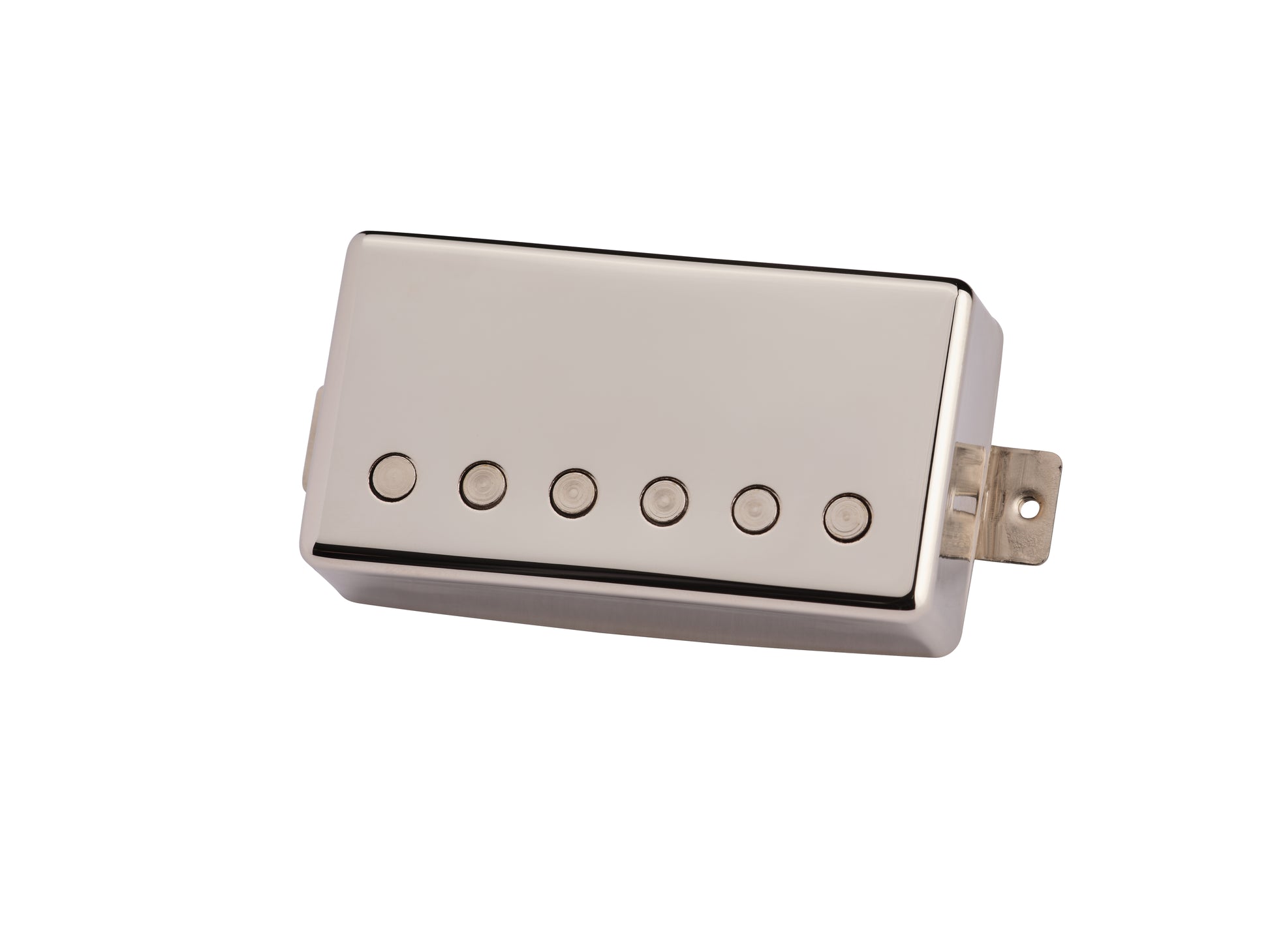 The pickup is well known both for high output and clarity. The design is a combination of a unique winding and a ceramic magnet placed under the pickup to give you more of everything and caused many players to give up active pickups. With lots of gain on your amp, harmonics is a piece of cake. The powerful high output M model humbucker let your notes come through even with lots of distortion on your amp. The pickup has lots of low end. Default is black open- uncovered pickup with nickel slugs. Black threaded slugs are optional. You can add covers in our shop.