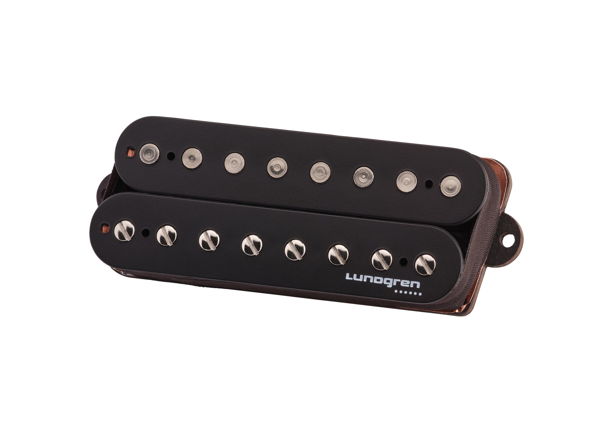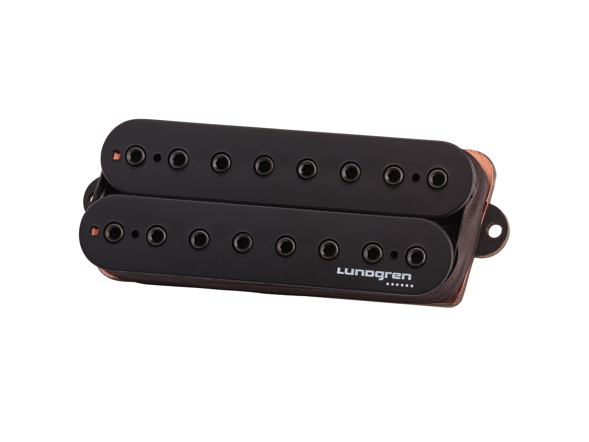 Lundgren M8 10 degree multiscale. We supply the original straight M8 to Ibanez guitars. Introduced 1999 and is a pioneer at open 8 stringed pickups. Often Imitated but not nailed. Go for the original.